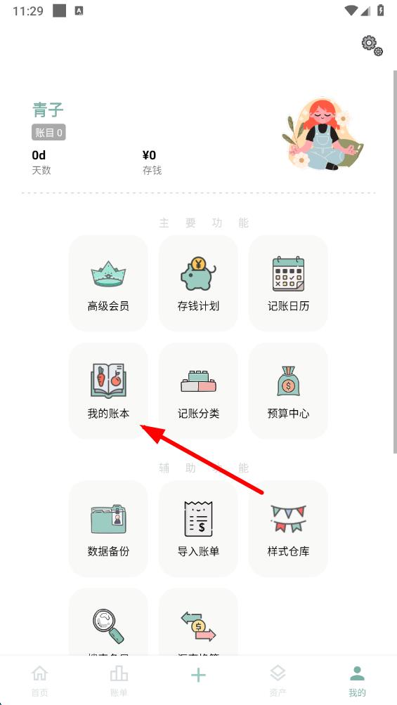 2、在个人功能界面中,找到并点击我的账本选项,进入账本管理页面。