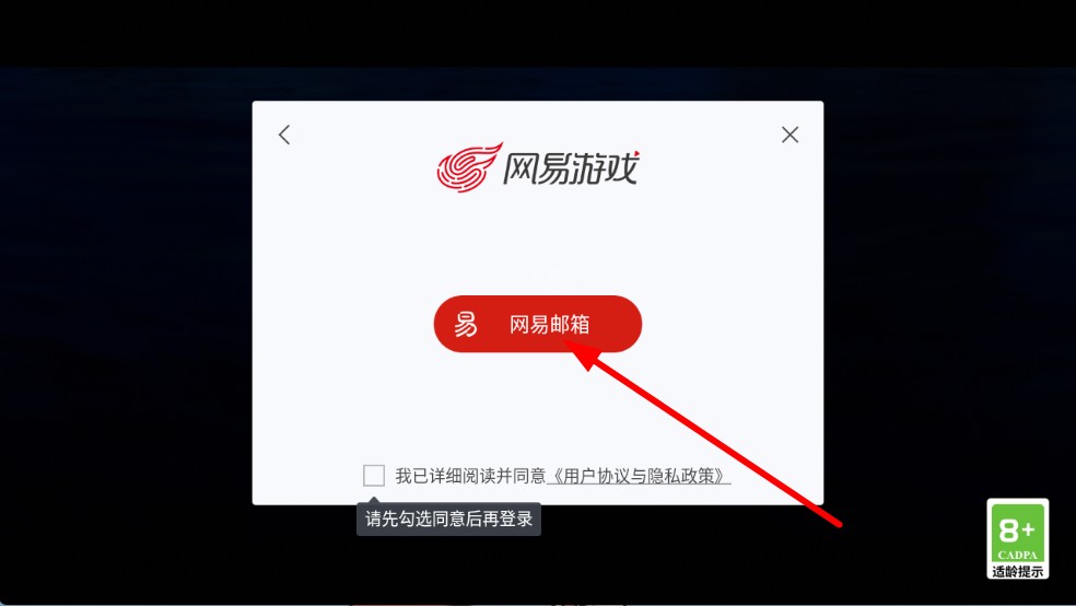 3、点击更多登录方式后,在跳转页面选择红色的“网易邮箱”按钮,切换为网易邮箱登录模式。