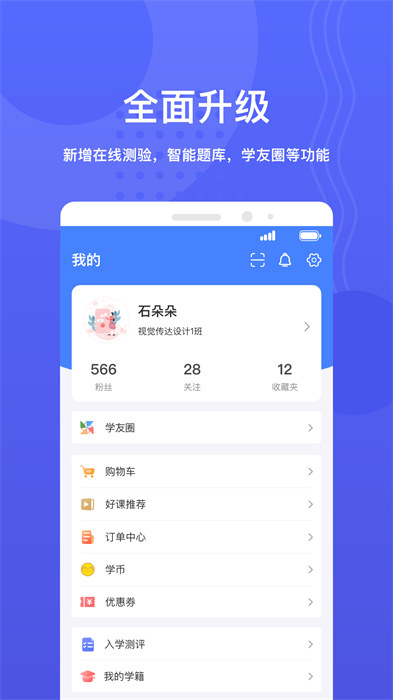 1.提供教学、管理、服务三大功能,打破传统教学方式的时空限制,使教学管理便捷化、课堂教学网络化、数据分析智能化、平台服务定制化、角色权限精细化、教学资料多样化,让更多人享受优质继续教育资源。
