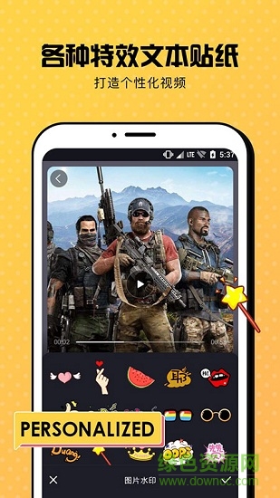 包含海量背景音乐类型、多功能剪辑、手势贴纸、画中画解说、麦克风录音、同步配音字幕、完美过渡效果、变速等编辑功能,让你轻松制作有趣的视频。