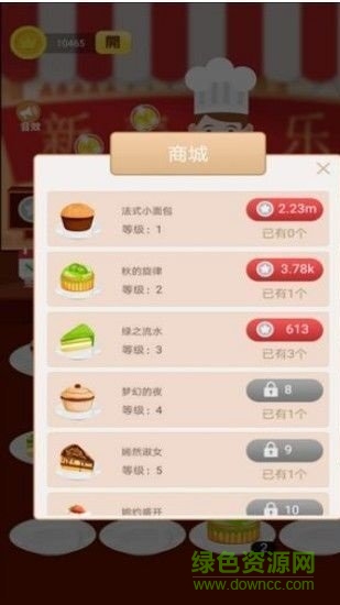 2.各种美味蛋糕解锁赚取丰厚的金币奖励,解锁全新的蛋糕提升整体的收益。