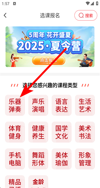 2、在选课报名的页面,选择感兴趣的课程类型,进入对应课程分类页面。