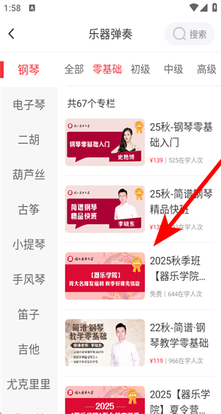 3、在课程分类的页面,选择目标课程,进入课程详情的页面。