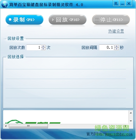 键盘鼠标录制精灵工具可以记录您键盘鼠标的所有操作并进行重放,录制过程会记录下所有的鼠标和键盘操作,包括两次击键间的时间间隔和普通鼠标的移动轨迹和键盘的任何按键。可以利用此工具在网络游戏中实现自动施放技能、自动行走等功能。需要的用户快来绿色资源网下载吧。
