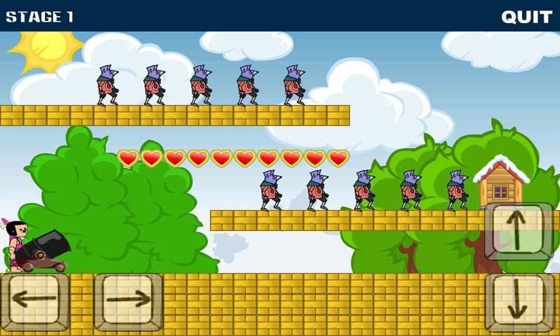 为了消灭蛇妖,葫芦娃造了一门加农炮。 但蛇妖请来了很多怪兽做帮手。 葫芦娃唯有依靠高科技才能战胜他们! 发射大炮消灭所有怪兽!点击屏幕发射炮弹,上下左右控制炮弹飞行! 你的任务是干掉所有怪兽!并且捣毁蛇妖的老巢!