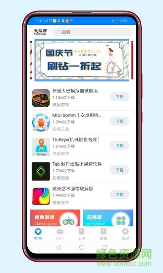 软件库app是一款资源非常齐全的手机应用商店,在这里你可以免费下载各种软件或者游戏,还有很多非常实用的小工具可以免费安装使用,有需要的用户赶快来下载体验吧!