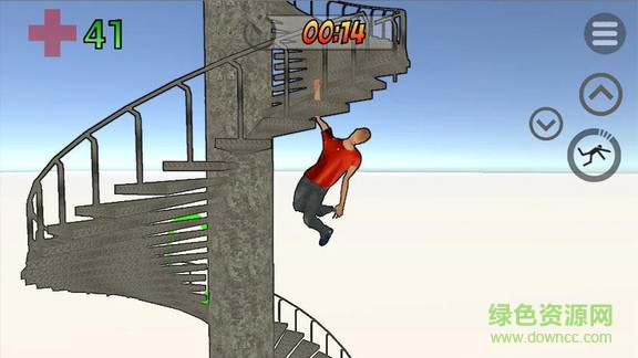 游戏中屏幕两侧有两个操纵杆。左侧控制您的动作,而右操纵杆控制您的相机。右侧还有另外三个按钮。向上箭头让你跳跃,向下箭头使你蹲下,绊倒的图标使你跌倒或起床。