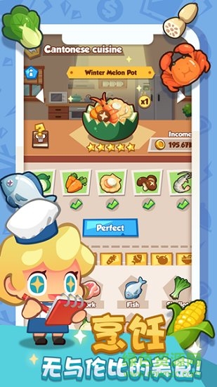 3、给你一个个满满的东方餐厅的体验,放置经营玩法有无限的乐趣,走遍祖国的大江南北收集各种食材。