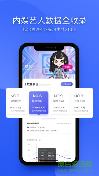 圈内人都在看的一站式艺人数据平台,作为爱奇艺官方指定合作伙伴,近期火热上线了《青春有你2》所有选手的专题数据页面,直接搜索选手的名字即可进入,欢迎在观看节目之余来关注小姐姐们的热度对比和变化哦!
