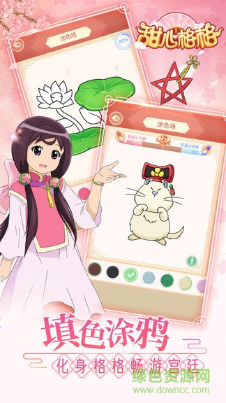 在《甜心格格涂色画家》游戏里,玩家将化身小格格,来体验甜心格格的宫廷生活吧!简单的填色涂鸦不仅能让宫廷变得更精致怡人,还能培养你的审美能力!精彩有趣的故事章节,带你认识许多小伙伴,给宫廷生活增添无限乐趣。你可以给心仪的装扮送花,也可以进行自由创意装扮,还能参加比赛成为画师和神探!宫廷生活趣味多,多种玩法由你选择!