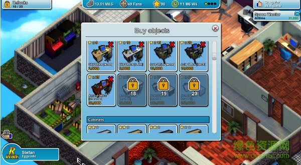 办公设备购买:建造好最简单的办公区域之后就要开始采购一些办公设备了,在设备购买页面,包含最基本的办工桌,从最简陋的木质办公桌到豪华办公设施都有列出,不过价格也是蹭蹭增高,玩家要根据自己的实际能力采购,等后期资金充足之后进行换购,另外还有丰富的办公设备也是可以购买的。