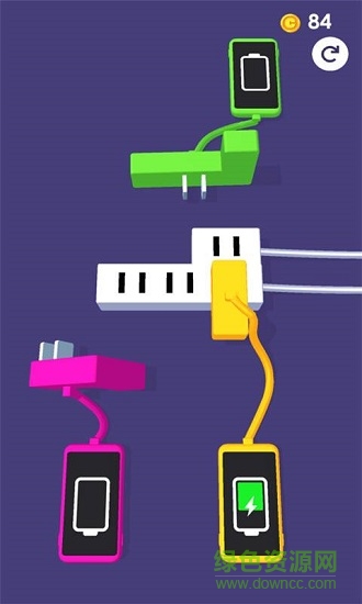 游戏中,玩家要将所有充电器插在线板上,顺利的将手机充满电并完成关卡;