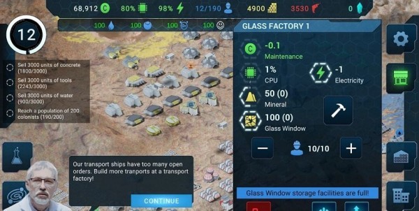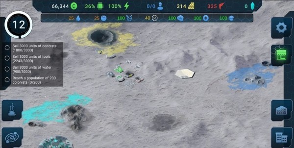 2、为您的殖民者提供水、食物和氧气,履行您的订单并扩大您的定居点。