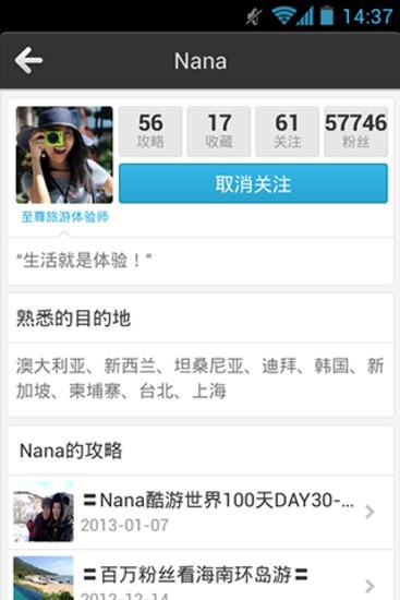 目前已有数十万旅游爱好者在使用一起玩,只要打开一起玩就可以看到他们在世界各地实时分享出来的照片和文字,让你有身临其境逛世界的感觉。如果有兴趣还可以直接与他们进行交流。