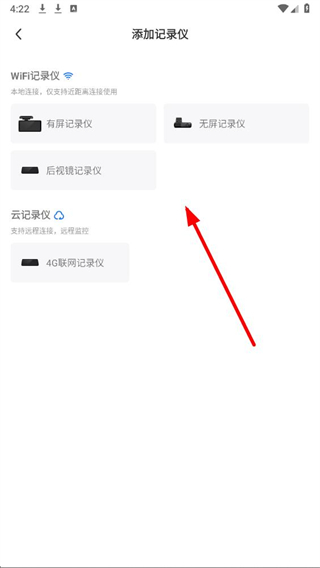 2、在添加记录仪界面,根据设备类型选择对应的记录仪选项,点击进入连接环节。