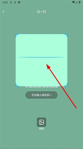 3、选择设备后进入扫一扫界面,将记录仪对应的二维码/条形码放入扫描框内,也可点击手动输入绑定码手动填写完成连接。