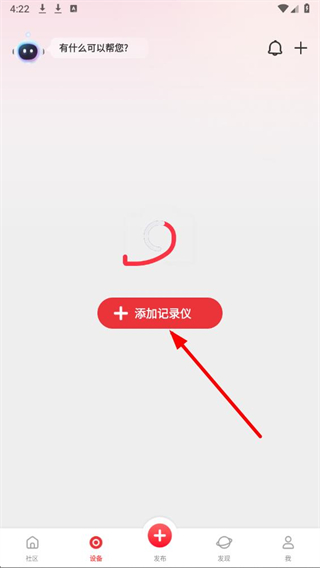 1、在凌度车生活的设备页面,点击添加记录仪按钮,进入记录仪选择界面。