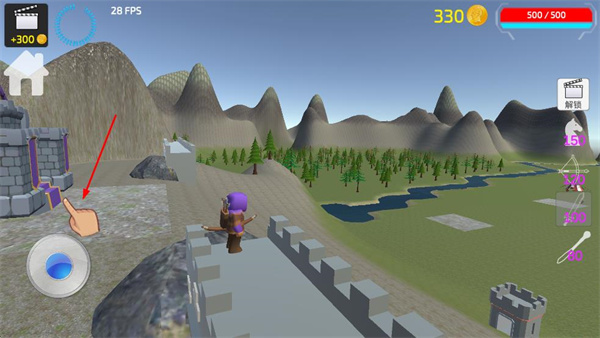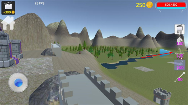 1、在游戏关卡选择界面点击1级关卡,进入对应的城堡防御场景。