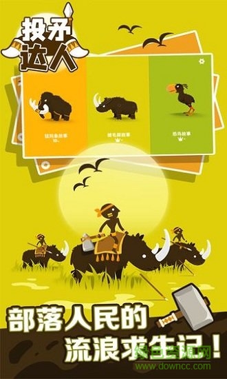 投矛达人这是一款卡通画风的休闲射击游戏,玩家可以操作角色调整射箭的角度,狩猎恐龙还有各种大型动物,玩法简单,狩猎越多分数越高,还能解锁更多武器。玩家扮演一个原始部落的勇士,为了获取食物而狩猎猛犸象,游戏中每一关都会要求玩家达成相应分数来射击猛犸象,从而顺利过关。