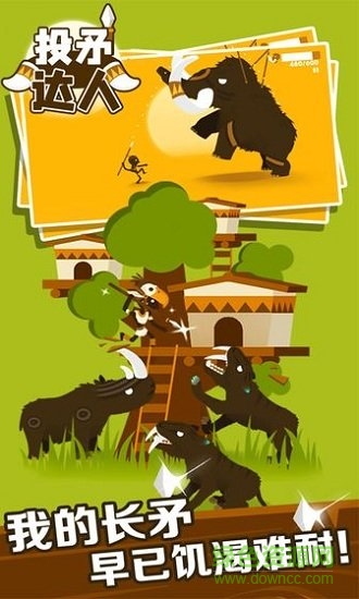 投矛达人手游的玩法十分的简单,这里有各种不同的动物,玩家需要对自己的弓箭的角度进行掌握,来击杀更多的野兽,同时武器的种类也是非常的多,不同的的距离的力度是不一样的的,你要把握好,同时攻击的位置也可以选择。