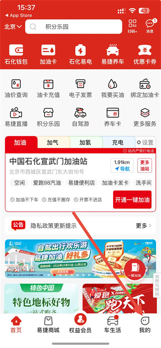 1、进入易捷加油APP后,在首页底部找到我的选项,点击该选项进入个人相关页面。