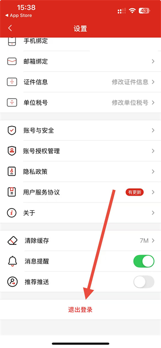3、在设置页面中,滑动选项列表找到退出登录按钮,点击该按钮即可完成退出登录的操作。