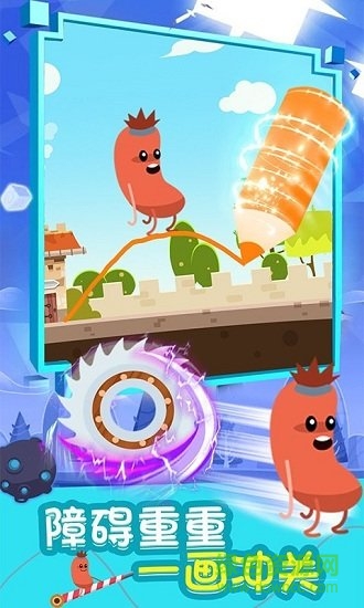 1、玩家的主要任务就是操控魔性的小香肠去冒险闯关,关卡中潜伏着很多的敌人,谨慎应对。