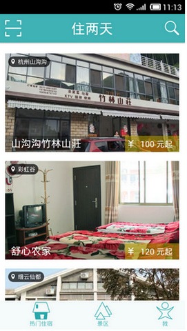 住两天是一款手机住宿预订软件,集农家乐住宿、美食、旅游的app,为用户提供专业农家乐资讯,及农家乐商户获取旅游动态,专业验证员实地验真,确保每条信息真实有效。住两天就是让都市人利用一切可支配的自由时间,真正安静的去体验农家生活,呼吸乡村清新空气,品味乡间的地道特产,享受那种回归田园的放松和惬意。