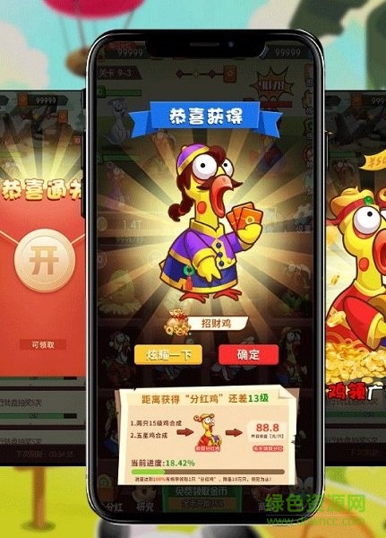 3、厉害的尖叫鸡给你的红包分成越多,如果你想获得大量的红包,就得不断合成升级;