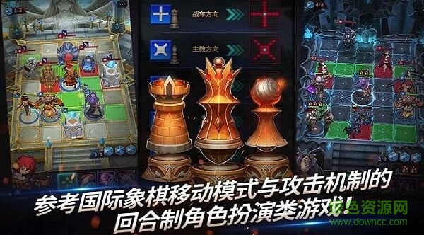 主打夹攻概念的战略rpg游戏,采用日系幻想风格的场景作画,在回合战场之中将英雄们棋子化方便战斗操作,游戏还联合了部分国际象棋的内容,英雄们可以实现直线或者斜线等不同的移动方案。