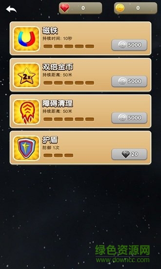 4、双倍得分:获得双倍得分后,在道具有效时间内,每收集一个金币即可获得两倍于原先倍数的得分;