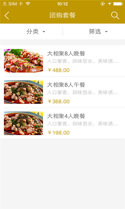 大相聚,是一款掌上美食预订服务软件,这里的菜谱选料讲究,规格划一,层次分明,鲜明协调,以用料广博、味道多样、菜肴适应面广而著称。尤以麻辣、鱼香、怪味等味型独擅其长。烹调手法上擅长小炒、小煎、干烧、干煸。它取材广泛,调味多变,菜式多样,口味清鲜醇浓并重,以善用麻辣著称,并以其别具一格的烹调方法和浓郁的地方风味,融会了东南西北各方的特点,博采众家之长,善于吸收,善于创新,享誉中外!