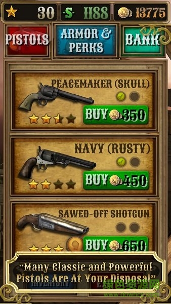 》--多种武器可选,有六射手、双筒猎枪等等;