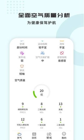 穿衣建议、感冒指数、运动指数、洗车建议、化妆建议,紫外线强弱等功能,成为你的生活小贴士!