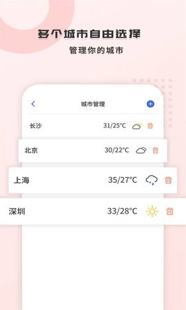 便捷城市管理,长按删除城市,简约操作一步到位!