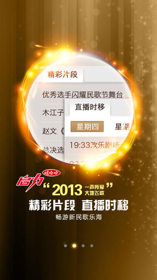一声所爱.大地飞歌,是广西电视台频道旗下的视频直播软件。第二季娃哈哈启力“一声所爱·大地飞歌”2013新民歌音乐季于2013年6月5日开启。节目在瑞典最受欢迎的音乐节目True Talent 舍我其谁原版模式基础上,定位“新民歌音乐季”,保留盲选、PK战等经典赛制,通过著名音乐制作人带队对传统民歌重新改编,使娃哈哈启力“一声所爱·大地飞歌”2013新民歌音乐季成为中国第一个也是唯一以民歌为主题的音乐鉴赏类节目。