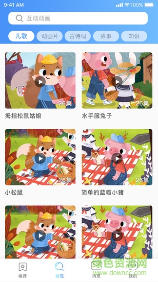 观看丰富的儿歌、古诗词、睡前故事、动画片等丰富的动画视频资源