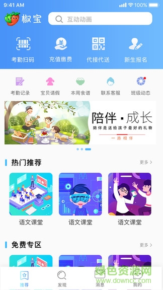 椒宝家长端app适合幼儿园的家长用户来使用,可以在手机上缴费和充值,可以看详细的考勤,了解孩子的出入园情况,支持在线请假和查看一周的食谱,还可以和家长与老师沟通,同时汇集了众多课程和动画资源,可以让孩子自主学习和玩耍!