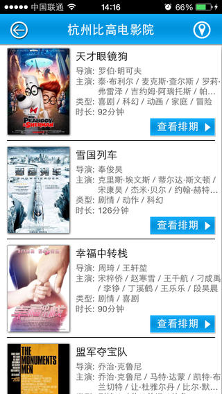 2.杭州比高电影城将以“品质、服务、价格”为核心,以“让电影回归大众”为理念,力争为杭州观众带来更高品质的影视视听享受。