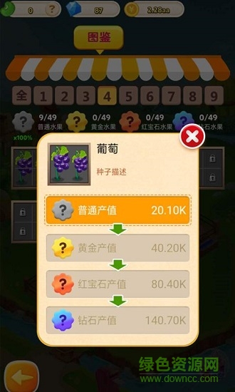 2、玩家的等级越高可以解锁的水果越多,提升等级还可以解锁更多的土地用来种植。