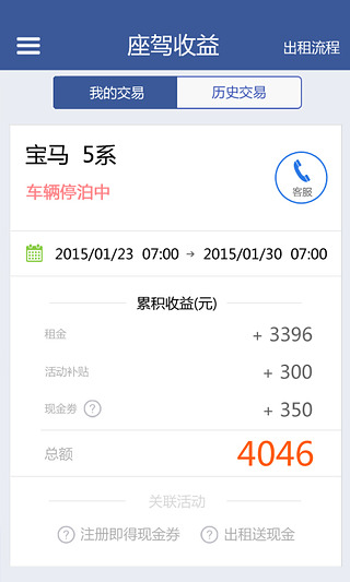 车主可在订单完成的5个工作日后通过人人租车APP在线申请提现