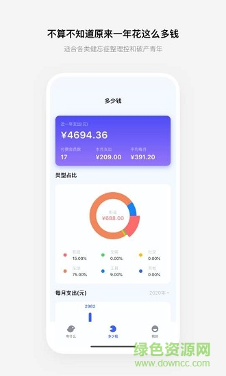 2、是一款可以记录你的互联网数字账单的软件,也是口碑好评的订阅制会员管理新概念应用;