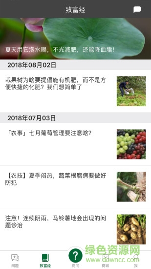 农百问软件是一款非常好用的农业问答服务手机app,用户可以在这里交流农业相关知识,可以向专家提问,可以学习致富经,可以在商城购买相关的农产品,欢迎感兴趣的朋友到绿色资源网下载使用!