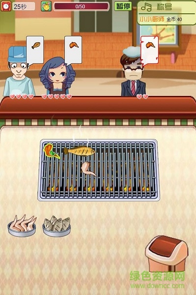 2.根据顾客的需求进行烧烤可以赚得大把的金币咧!