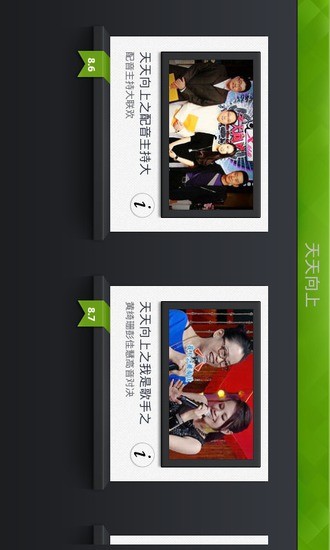 天天向上是一款娱乐视频软件,是一个脱口秀节目视频。这里聚集了众多青春偶像参与其中,是追星族们手机必备的工具,喜欢谁,就可以点击看谁的视频,主动权完全掌握在你的手里!不用去现场,一样能够体验到视频带来的快乐和精彩!欢迎下载体验。