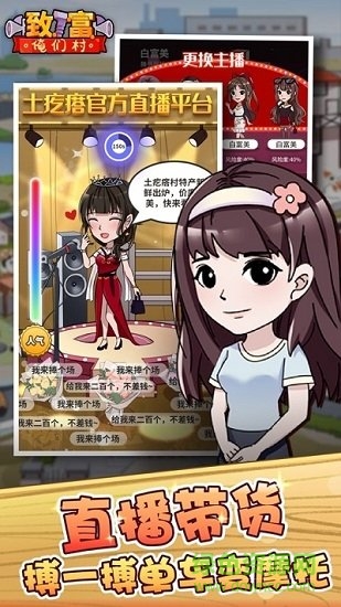 游戏是一款以脱贫致富为主题的挂机模拟经营游戏,主人公王二嘎子大学毕业回到家乡,响应国家号召,带领村民建立养殖场、建造厂,开设餐饮店,并招聘主管进行深造,同时招商引资,带领村民走上脱贫致富小康之路。