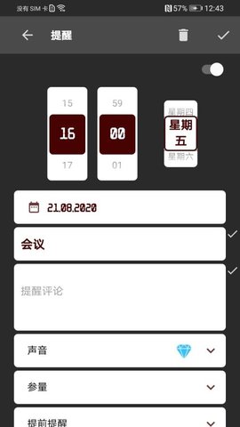 设备屏幕上出现在所有应用程序顶部的贴纸。 “提醒”将在预定事件之前将它们显示在设备的屏幕上。贴纸显示事件的时间和您编写的文本;