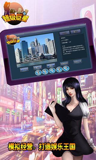 超级巨星是一款模拟经营类手机游戏,玩家在游戏中要经营自己的娱乐公司,并且要发现招募具有优秀潜质的艺人来培养他们,除此之外,你还可以自己投资来拍电影,相当于在游戏中体验一把当娱乐公司老板和各种艺人打交道的故事,培养玩家的经营管理能力,更有梁朝伟周润发等大牌明星等着你!喜爱的朋友赶快下载体验吧!
