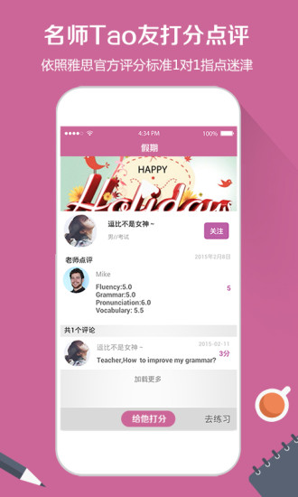 由雅思考试官方合作的教学平台,雅思口语app线上有着最新的的当季新题,海量口语真题,帮助你快速提分,并且线上名师指导,标准口语范文,切中要点