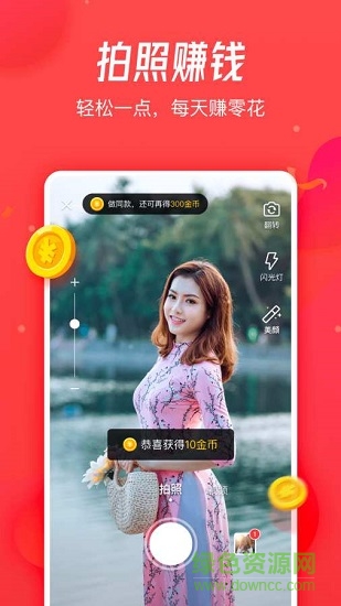 相机拍摄软件,软件功能丰富,可以美化照片、制作影集,还有丰富多彩的任务,用户完成任务可以赚钱金币,轻松赚零花钱。